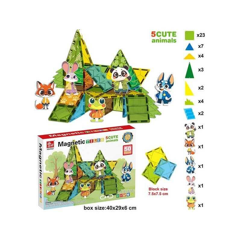 Магнітний конструктор SQ 66002-7 (12) 50 деталей, 5 фігурок тварин, в коробці