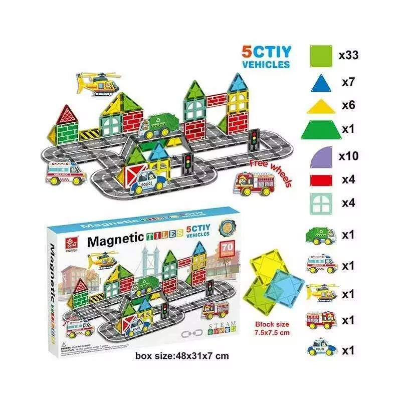 Магнітний конструктор SQ 66003-2 (8) 70 деталей, 4 машинки, 1 фігурка гелікоптера, в коробці
