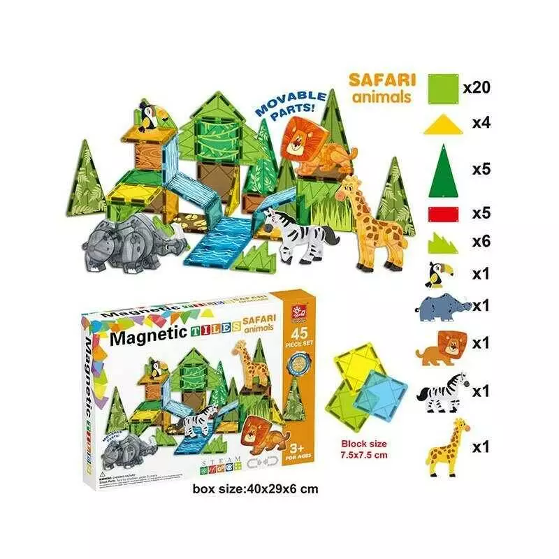 Магнітний конструктор SQ 68002-1 (12) 45 деталей, 5 об’ємних фігурок тварин, в коробці