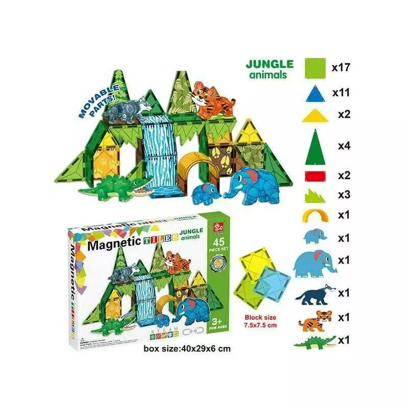 Магнітний конструктор SQ 68002-2 (12) 45 деталей, 5 об’ємних фігурок тварин, в коробці