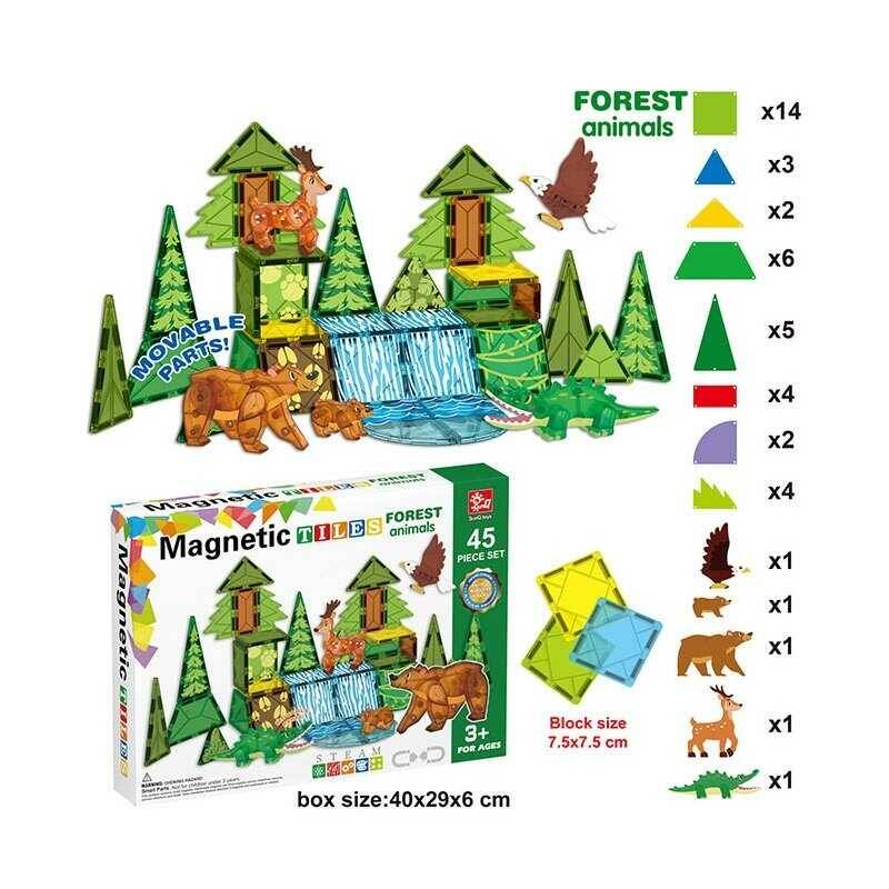 Магнітний конструктор SQ 68002-3 (12) 45 деталей, 5 об’ємних фігурок тварин, в коробці
