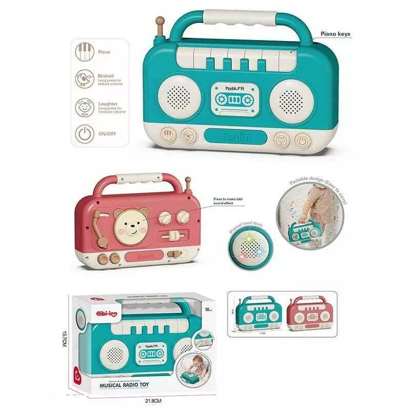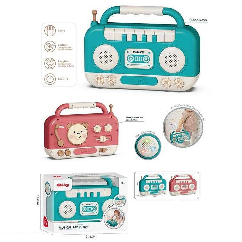 Магнітофон 688-83 (36) підсвічування, звуки, на батарейках, барабани, пискавка, піаніно з режимами гри, тріскачка, пальчикові ігри, мелодії, в коробці