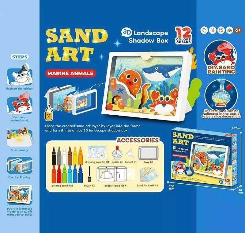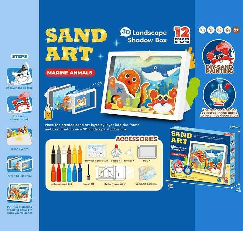 Малюй піском QS 071 (48) 12 кольорів піску, 6 картинок, 3-D картинка, таця, картонна рамочка, щітка, в коробці