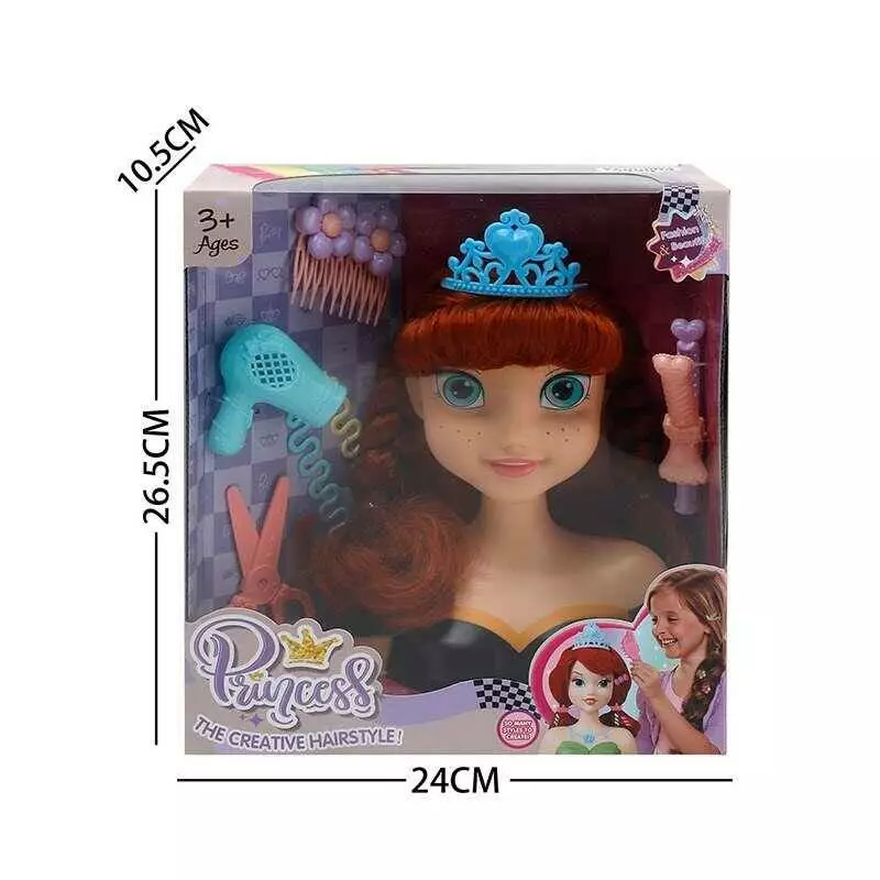 Манекен для зачісок LK 1713 F (48/2) аксесуари, корона, фен, ножиці, шпильки, в коробці