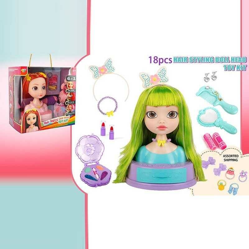 Манекен для зачісок SR 012 (18/2) 2 види, косметика, перукарські інструменти, заколки, резинки, в коробці
