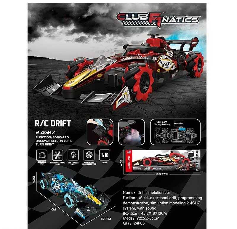Машина на радіокеруванні 112417 (24) 2 кольори, парогенератор, роликові колеса, батарейка, що перезаряджається, пульт 2.4 GHZ, світло, в коробці
