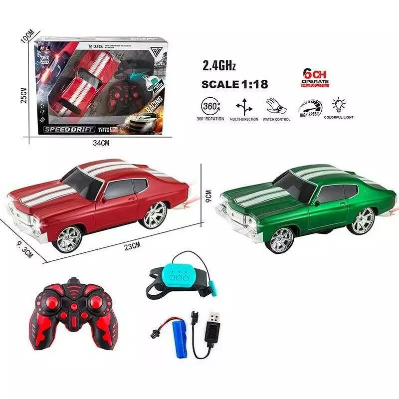 Машина на радіокеруванні 12065-9 (36/2) 2 кольори, акумулятор 3.7V, пульт 2.4 GHz, браслет, масштаб 1:18, звуки, мелодії, підсвічування, в коробці, ВИ