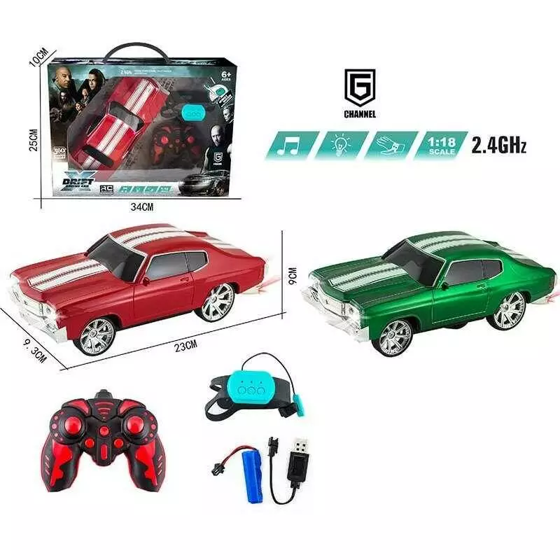 Машина на радіокеруванні 12066-9 (36/2) 2 кольори, пульт2.4 GHz+сенсорний браслет, акум. 3.7V, світло, звуки, коробці, ВИДАЄТЬСЯ МІКС