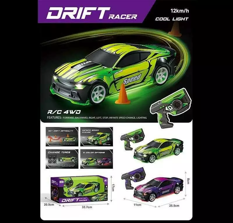 Машина на радіокеруванні 33637 (16) 2 кольори, пульт керування 2.4 GHZ, акумулятор 3.7 V, USB кабель, підсвічування, розгін 12 км\год, в коробці