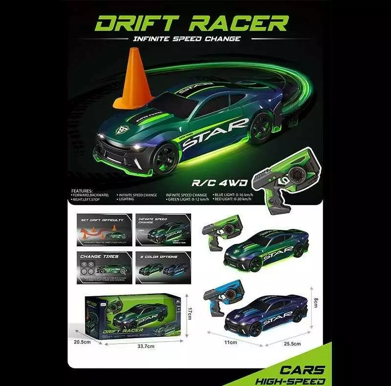 Машина на радіокеруванні 33638 (16) 2 кольори, пульт керування 2.4 GHZ, акумулятор 7.4 V, USB кабель, підсвічування, 3 режими швидкості, в коробці