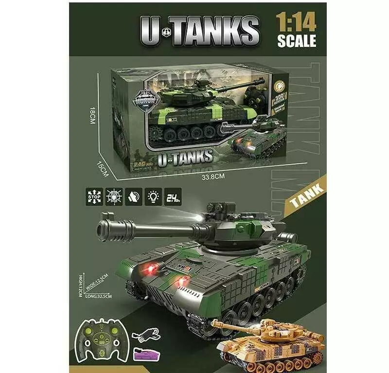 Танк на радіокеруванні 799 D-10 (24) 2 кольори, гусеничний хід, підсвічування, звук, масштаб 1:14, акум. 3,7 V, пульт 2,4 G, в коробці