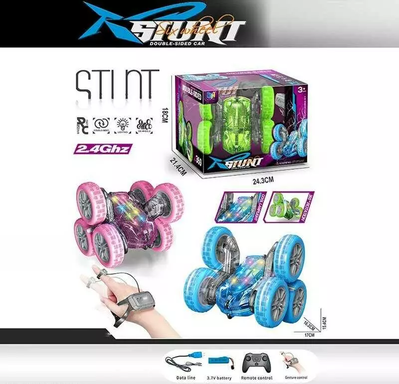 Машина на радіокеруванні DH 666-91 C-1 (32/2) 3 кольори, підсвічування, перевертає колеса, оберти на 360°, пульт 2.4GHz, акум. 3.7V, в коробці, МІКС