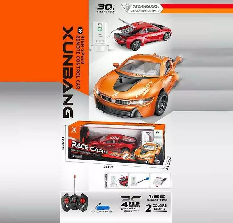 Машина на радіокеруванні KS 26 Y (36) 2 кольори, акумулятор 3.7V, пульт 49 MHZ, масштаб 1:22, підсвічування, гумові шини, зарядна станція, в коробці
