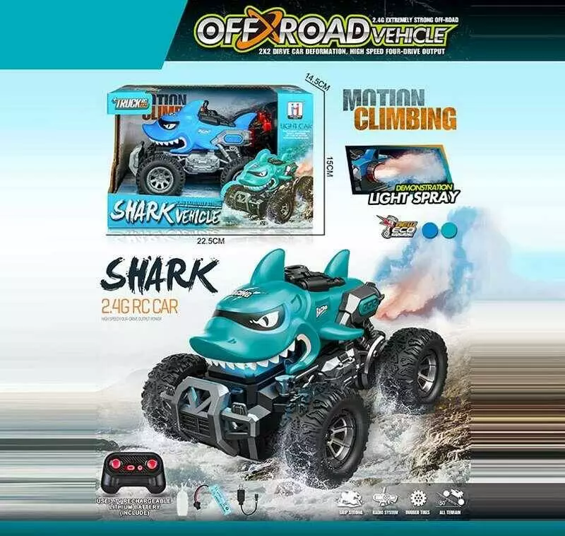 Машина на радіокеруванні MK 752 A (36/2) 2 кольори, "Акула", розмір - 15х13.5х10 см, акум. 3.7 V, пульт, парогенерація, підсвічування, гум. в коробці