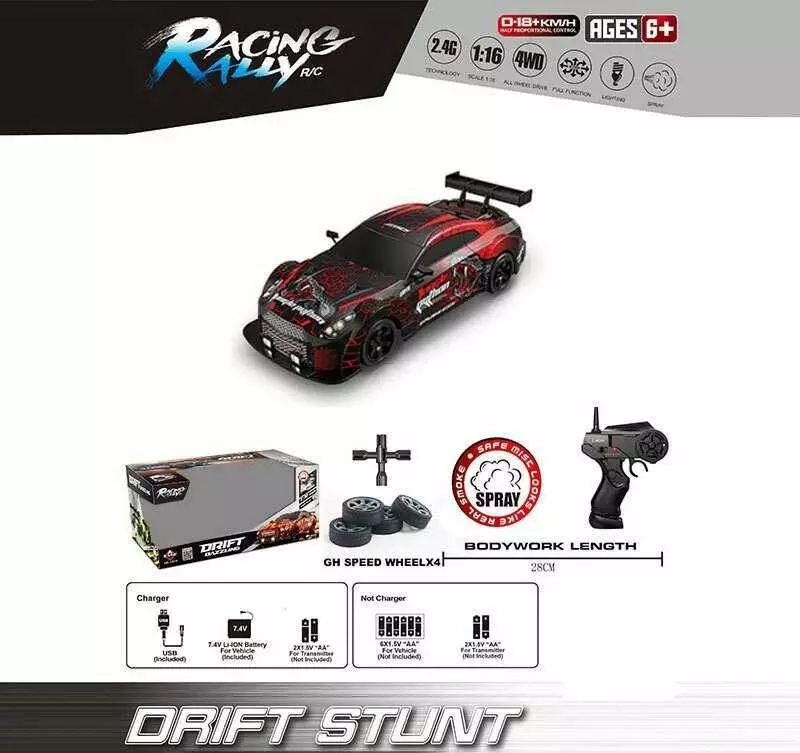 Машина на радіокеруванні SC 16 A 14 (12) масштаб 1:16, акумулятор 3.7V, пульт керування 2.4 GHz, дрифтує, 4WD, змінні колеса, підсвічування, в коробці