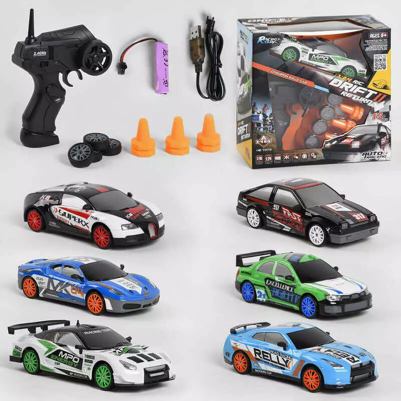 Машина на радіокеруванні SC 24 A 07/12 (36) 6 кольорів, акумулятор 3.7 V, підсвічування фар, 6 дорожніх конусів, в коробці, ВИДАЄТЬСЯ МІКС ВИДІВ