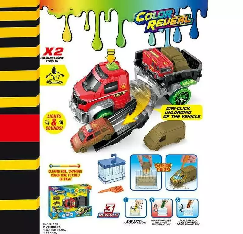 Машина SK 337 XB (30) 2 металопластикові машинки, змінює колір, піпетка, механічний запускач, рухливі елементи, звук, підсвічування, в коробці