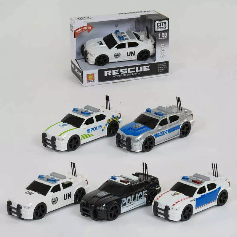 Машина WY 500 A/B/C/D/E (48) 5 видів, інерція, відкривається багажник, світло маячків, звук, в коробці, ВИДАЄТЬСЯ ТІЛЬКИ МІКС ВИДІВ