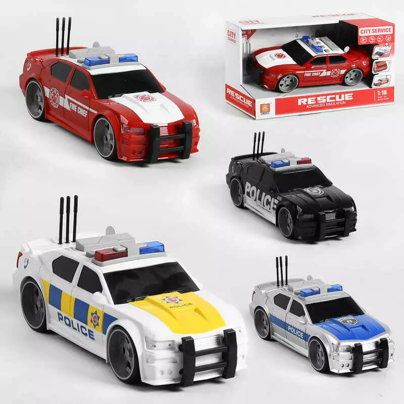 Машина WY 620 A/B/C/D (24) "Службовий транспорт", 4 види, відкривається багажник, підсвічування мигалок, звук сирени, фрази англ. мовою, в коробці