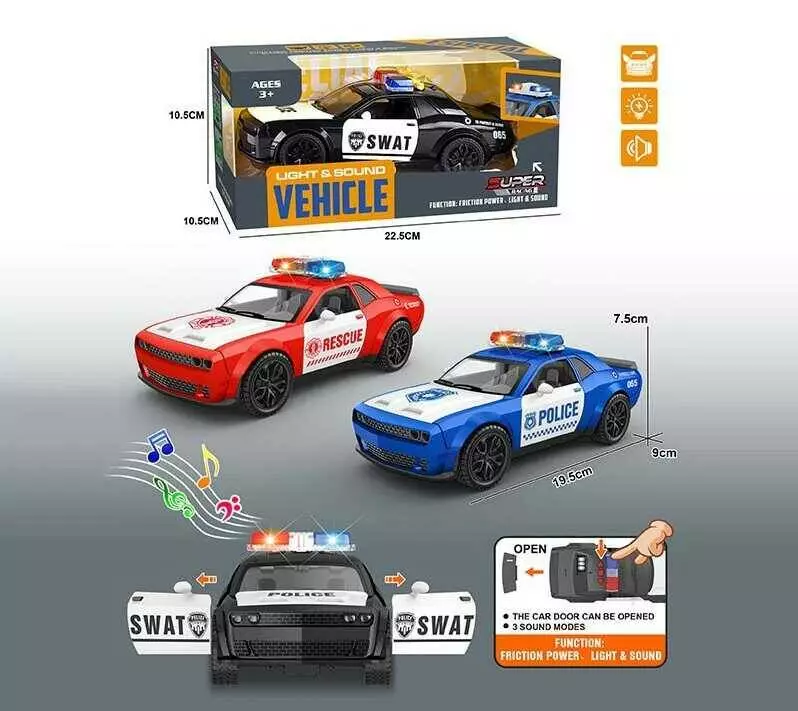 Машина YM 9904 B (84/2) “Поліція”, підсвічування, звуки транспорту, мелодії, інерція, двері відчиняються, гумові шини, в коробці, ВИДАЄТЬСЯ МІКС ВИДІВ