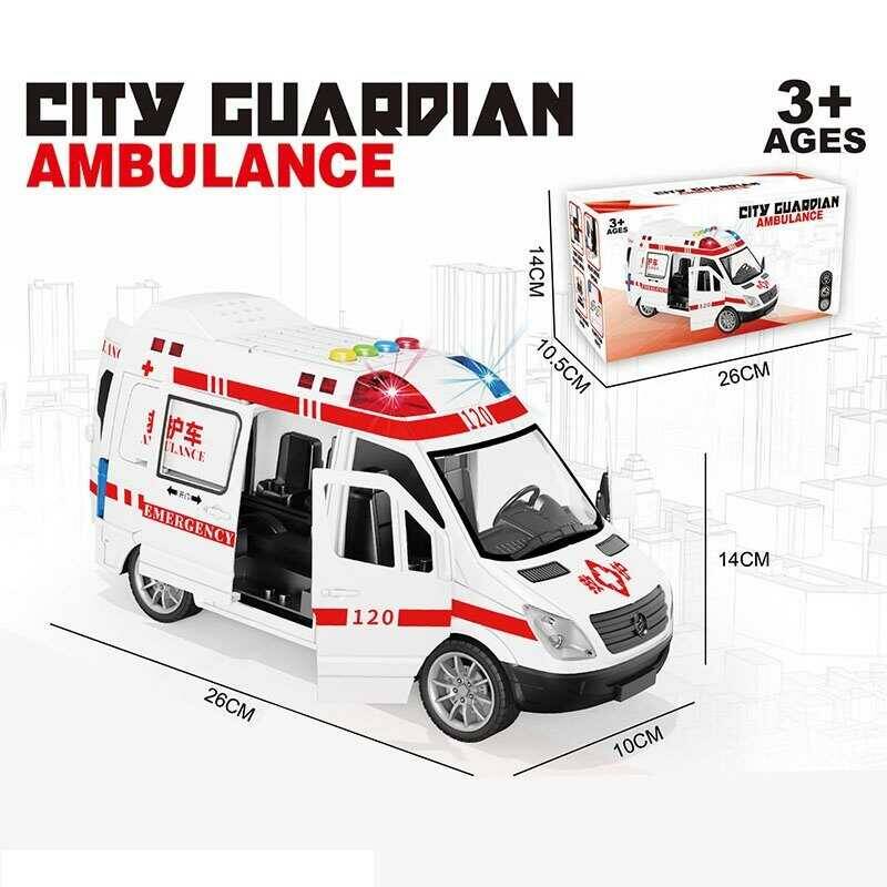 Машинка 139-1 (48/2) “Швидка допомога”, на батарейках, підсвічування, інерція, відчиняються дверцята, звуки, пісні англ. мовою, в коробці