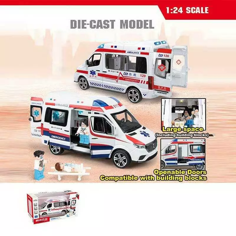 Машинка 2408 C (12) "Швидка допомога", звук, підсвічування, інерція, металопластик, відчиняються двері, ігрові фігурки, в коробці