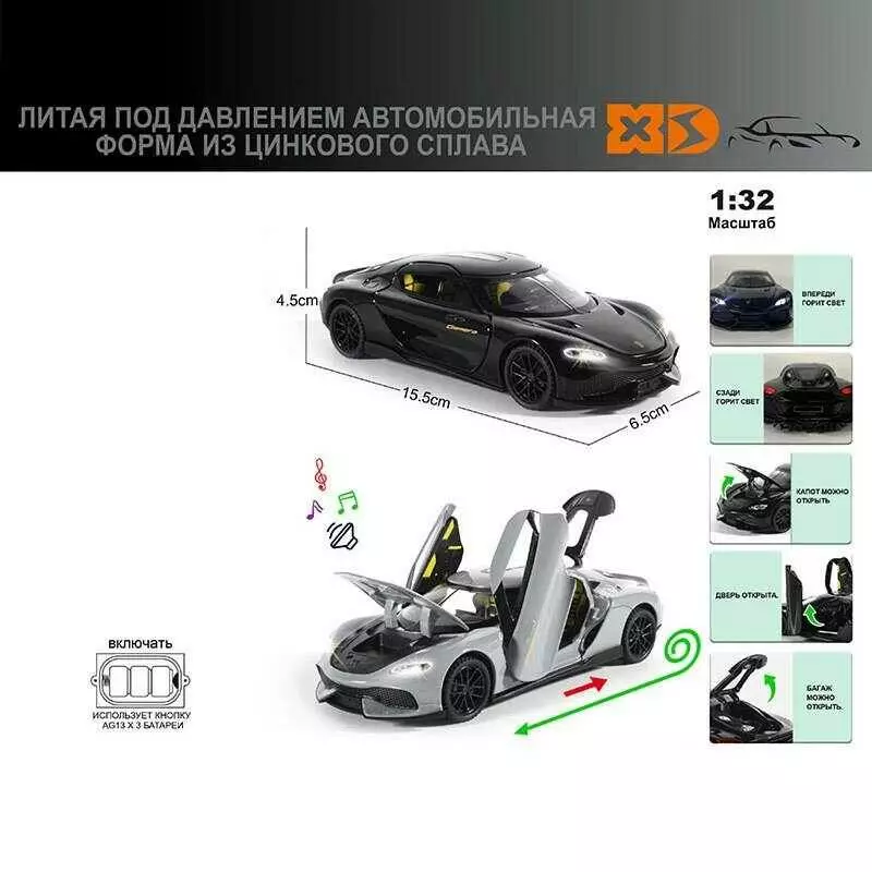 Машинка 73022 (48/2) "Авто Експерт", 2 види, металопластик, 1:32, звук, світло, інерція, відкриваються двері, в коробці