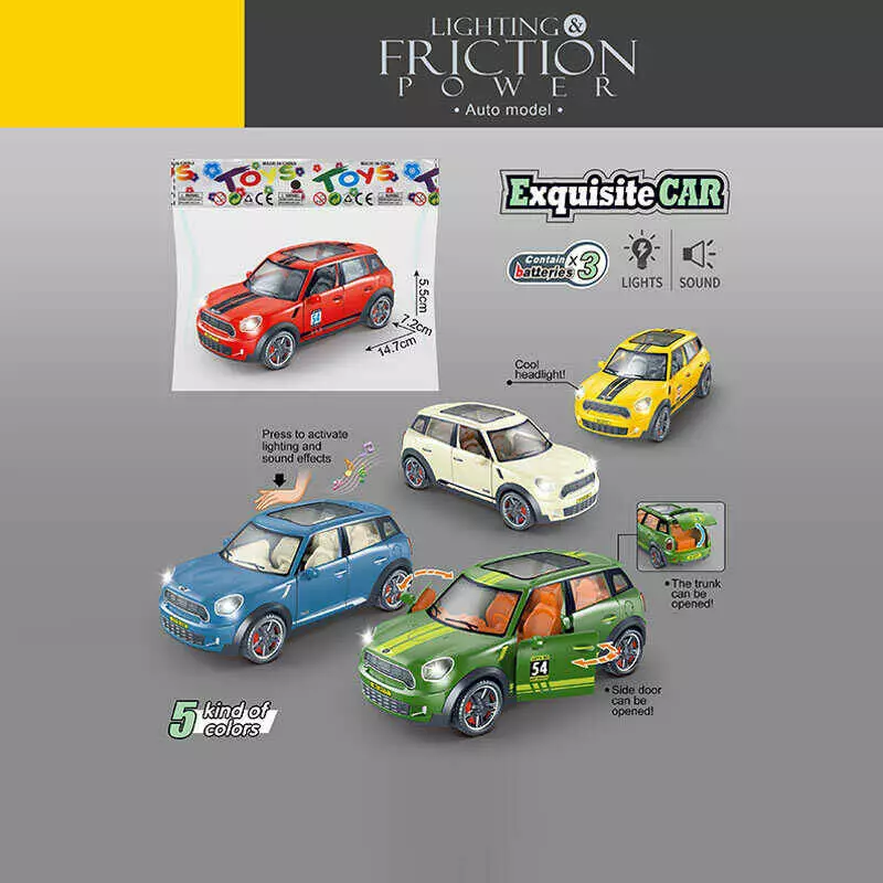 Машинка 7754 (130) 5 кольорів, звуки, мелодія, підсвічування, інерція, на батарейках, гумові шини, відчиняються двері, в пакеті, ВИДАЄТЬСЯ ТІЛЬКИ МІКС