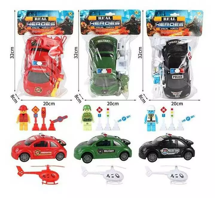 Машинка 77672 (72/2) 3 види, машина, дорожні знаки, гвинтокрил, модель ігрова фігурка, інерція, у пакеті