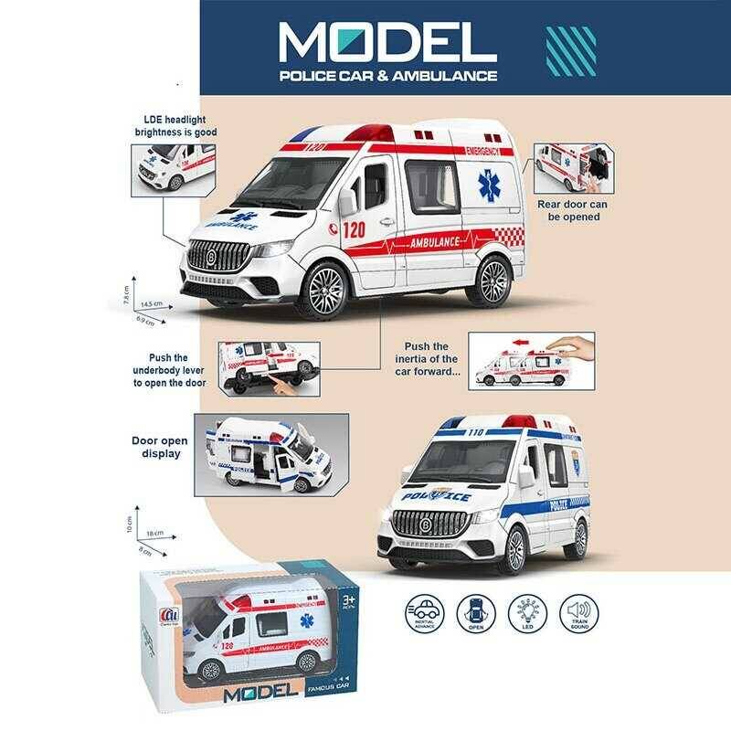 Машинка 8801 (96/2) “Поліція”, розмір: 14.5х6.9х7.8 см, інерція, підсвічування, звук, відчиняються передні, бокова та задні двері, в коробці