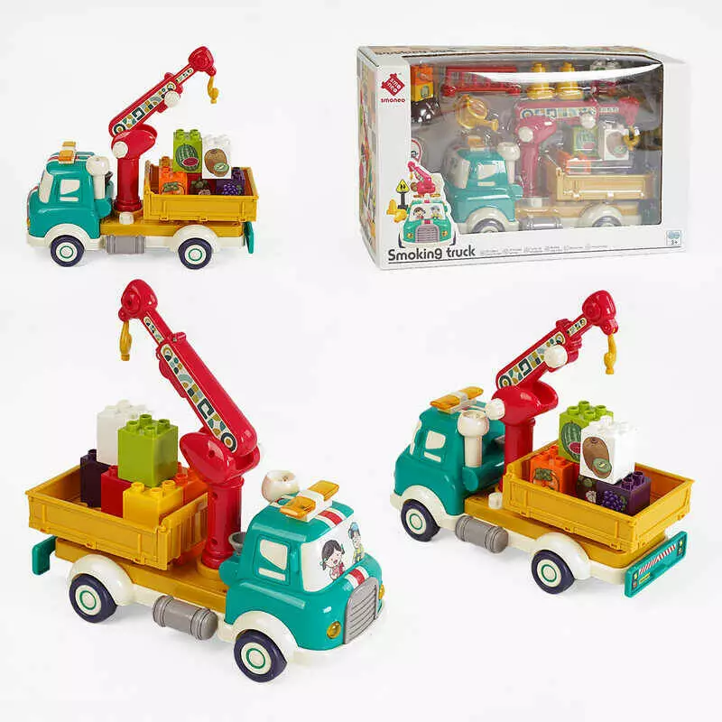 Машинка 88025 (18) підсвічування, звуки, парогенератор, інерція, рухомі елементи, дорожні знаки, конструктор, в коробці