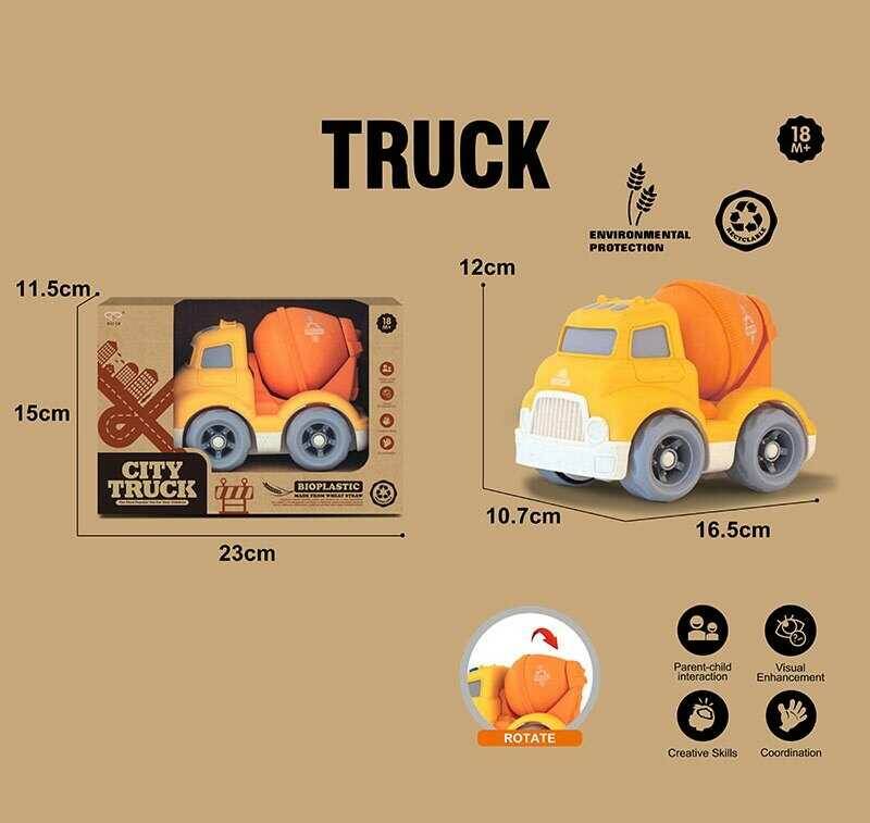 Машинка 902-2 (72/2) “Бетонозмішувач”, довжина 16.5 см, рухомі елементи, біопластик, в коробці