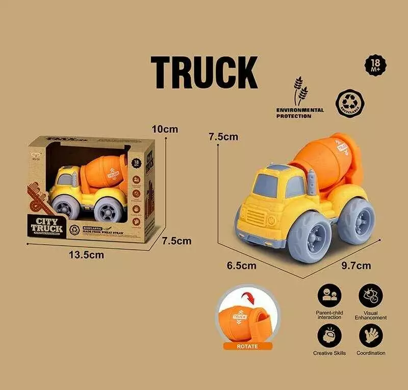 Машинка 911-2 (240/2) “Бетонозмішувач”, довжина 10 см, рухомі елементи, біопластик, в коробці