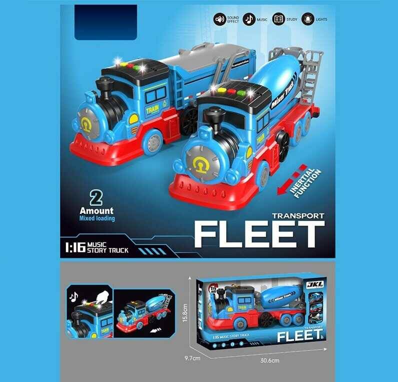 Потяг H 2511 (48) 2 види, довжина 28 см, підсвічування, звуки, інерція, масштаб 1:16, рухомі елементи, гумові шини, в коробці