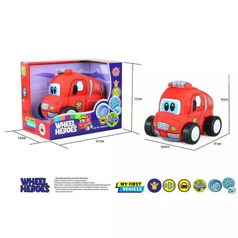 Машинка м`яка QL 8002 C-5 (48) “Пожежна машина”, герой, звуки, музика, вібрує, знімний чохол, на батарейках, в коробці