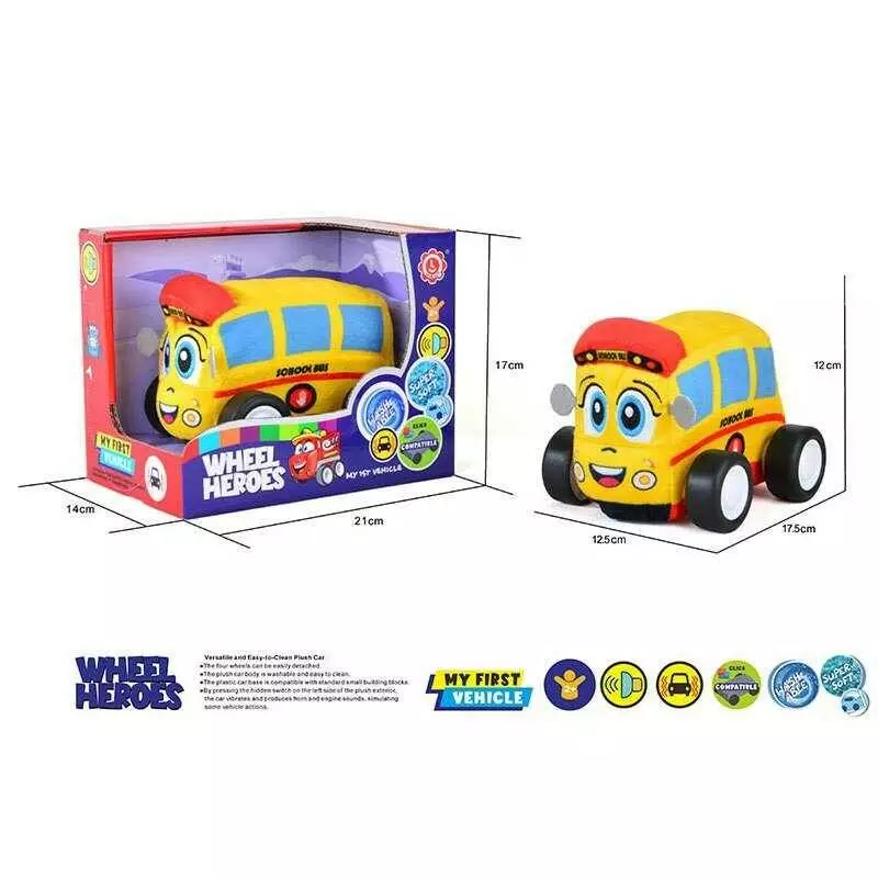 Машинка м`яка QL 8003 C-5 (48) “Шкільний автобус”, герой, звуки, музика, вібрує, знімний чохол, на батарейках, в коробці