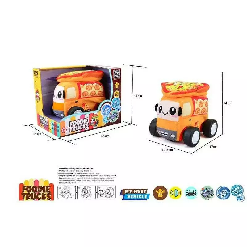 Машинка м`яка QL 8101 C-5 (48/2) “Піца”, звуки транспорту, веселі мелодії, вібрація, знімний чохол, гумові шини, на батарейках, в коробці