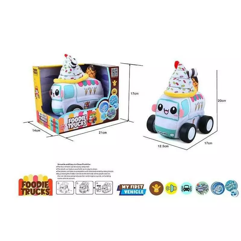 Машинка м`яка QL 8102 C-5 (48/2) "Фургон з морозивом", звуки транспорту, веселі мелодії, вібрація, знімний чохол, гумові шини, на батарей., в коробці