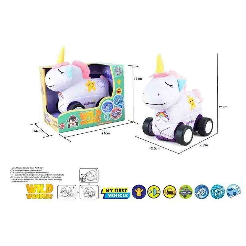 Машинка м`яка QL 8801 C-5 (48/2) “Єдиноріг”, звуки транспорту, веселі мелодії, вібрація, знімний чохол, гумові шини, на батарейках, в коробці