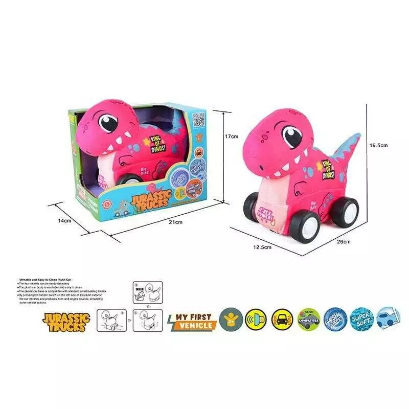 Машинка м`яка QL 8901 C-5 (48/2) “Динозавр”, звуки транспорту, веселі мелодії, вібрація, знімний чохол, гумові шини, на батарейках, в коробці