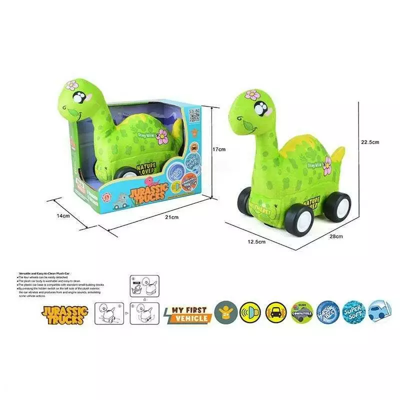Машинка м`яка QL 8902 C-5 (48/2) “Динозавр”, звуки транспорту, веселі мелодії, вібрація, знімний чохол, гумові шини, на батарейках, в коробці