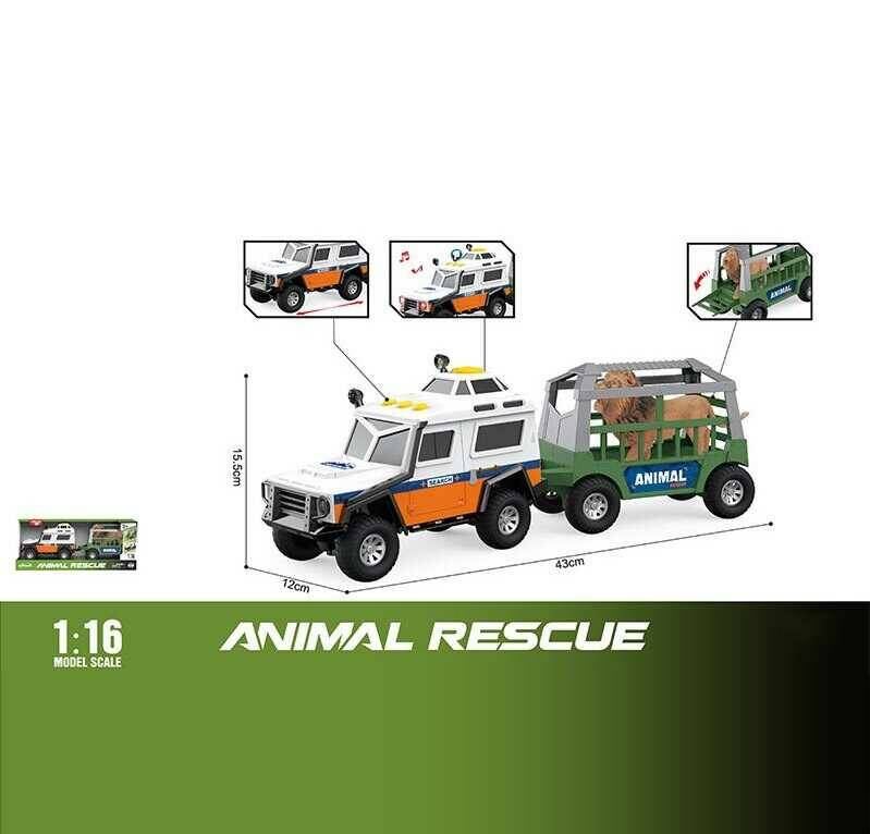 Машинка WY 1163 B (18) з причепом, розмір: 43х12х15.5 см, підсвічування, звуки, фраза англійською мовою, інерція, гумові шини, тварина, в коробці