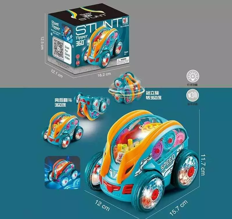 Машинка YJ 388-68 (72/2) перевертиш, розмір: 15,7х12х11,7 см, оберт на 360°, підсвічування, музика, в коробці