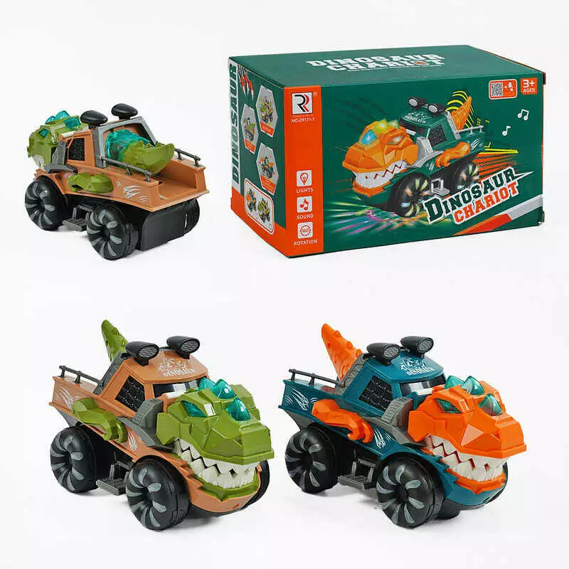 Машинка ZR 171-1 (72/2) "Динозавр", 2 кольори, світло, звук, колесо вільного ходу, рухливі елементи, в коробці