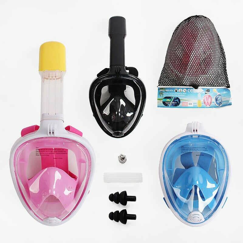 Маска C 40166-40 M (20) ВИДАЄТЬСЯ ТІЛЬКИ МІКС ВИДІВ, 3 кольори, повнолицева, беруші для плавання, в сумці
