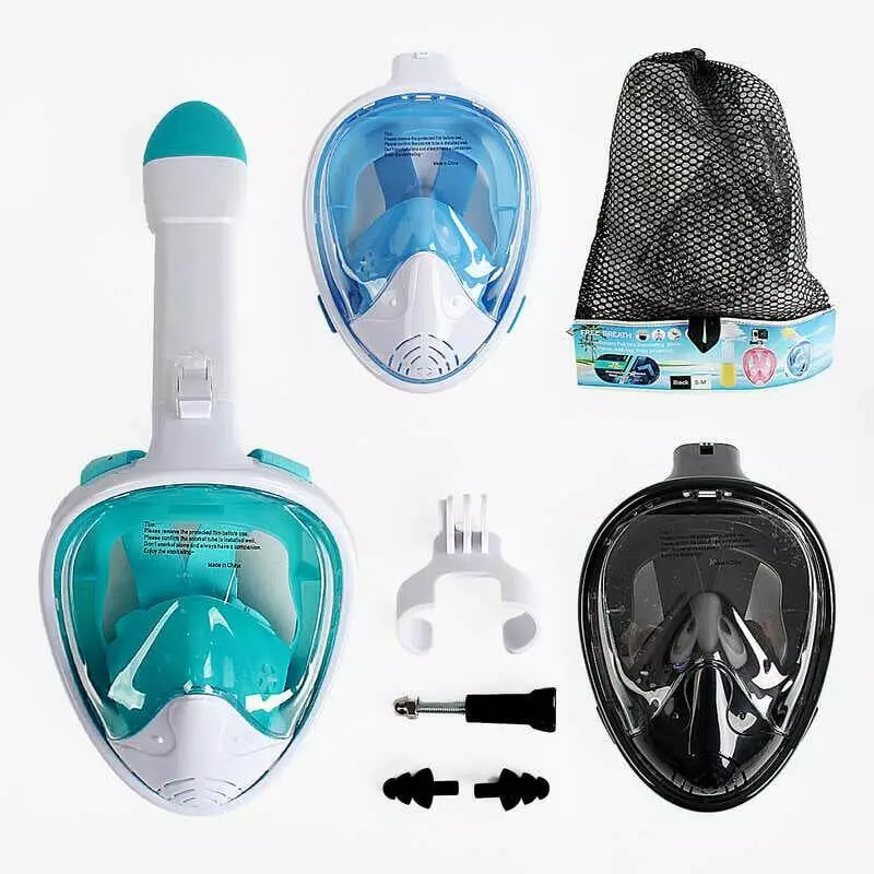 Маска C 40168-310 M (20) ВИДАЄТЬСЯ ТІЛЬКИ МІКС ВИДІВ, 3 кольори, повнолицева, беруші для плавання, в сумці
