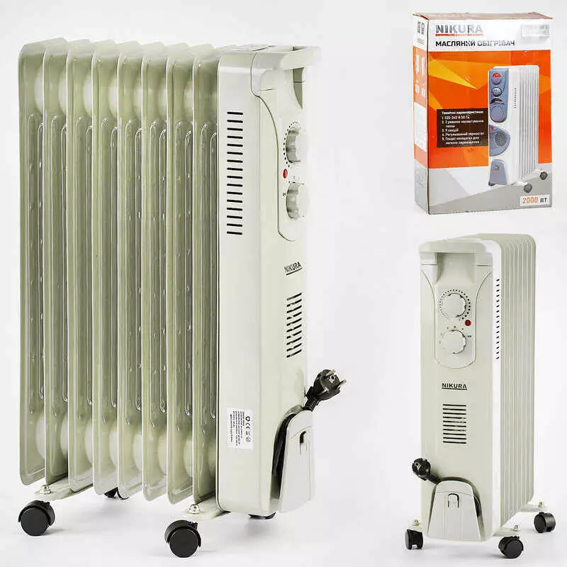 Масляный обогреватель с дуйкой Nikura 34858 (1) 9 секций, мощность 2000 Вт, в коробке