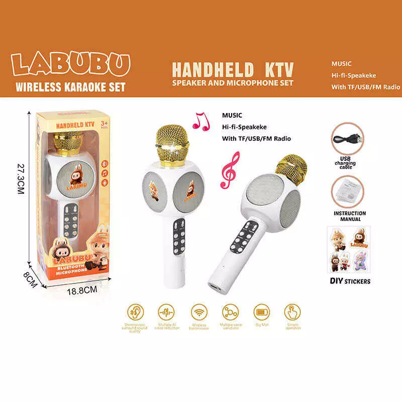 Мікрофон 1816 A (144/2) Bluetooth, зміна голосу, ехо, кілька режимів, AUX, роз’єм для TF-карти, підсвічування, регуляція гучності, в коробці