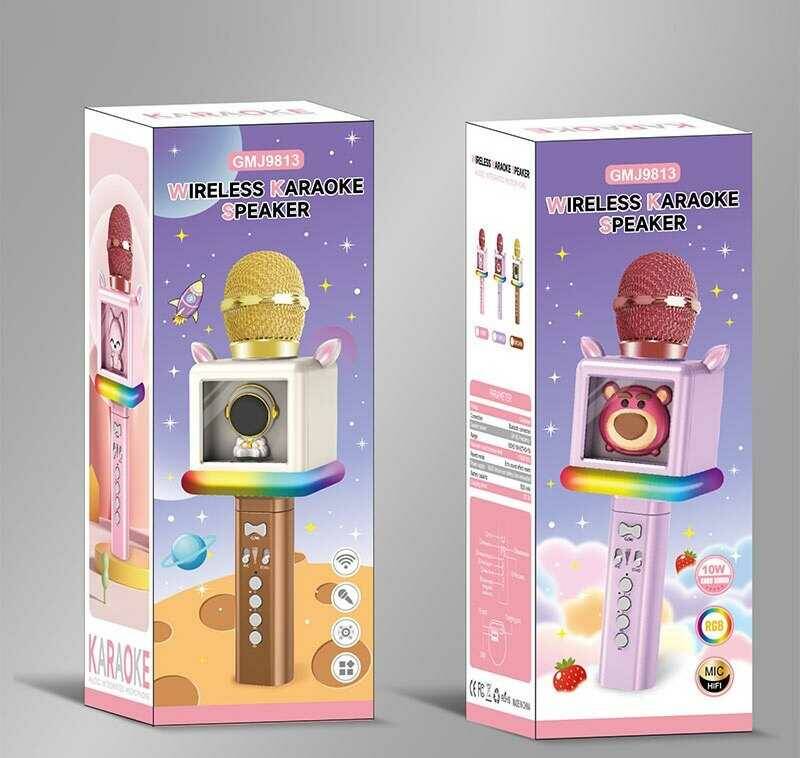 Мікрофон GMJ 9813 (48) 3 види, підсвічування, зміна голосу, регулювання гучності, Bluetooth, слот для TF-карти,слот USB,регулювання відлуння,в коробці