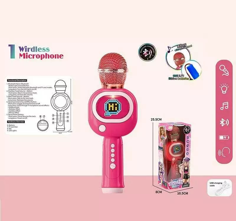 Мікрофон HY 850 E (96/2) підсвічування, 3 ефекти зміни голосу, регулювання гучності, Bluetooth, слот для TF-карти, в коробці